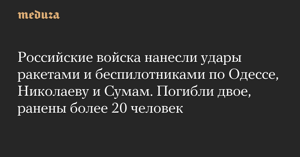 Российские войска нанесли удары ракетами и беспилотниками по Одессе, Николаеву и Сумам. Погибли двое, ранены более 20 человек
