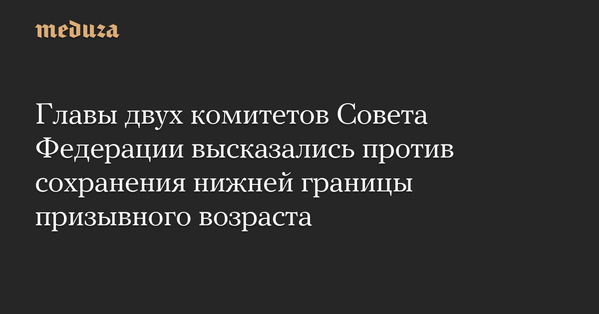 Главы двух комитетов Совета Федерации выступили против сохранения нижней границы призывного возраста. Соответствующие заявления председатель комитета по обороне Виктор Бондарев и глава комитета по законодательству и госстроительству Андрей Клишас опубликовали в своих телеграм-каналах.
