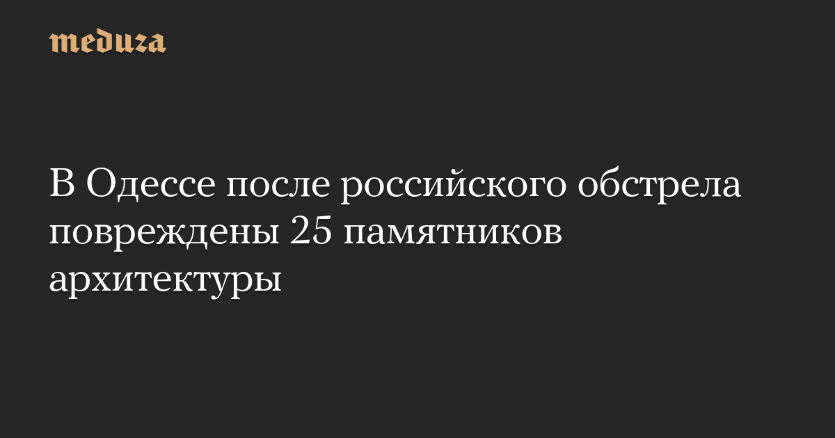 В Одессе после российского обстрела повреждены 25 памятников архитектуры