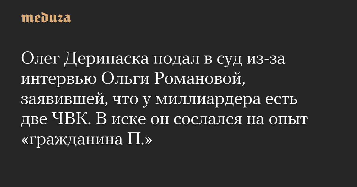 Олег Дерипаска подал в суд из-за интервью Ольги Романовой, заявившей, что у миллиардера есть две ЧВК. В иске он сослался на опыт «гражданина П.»