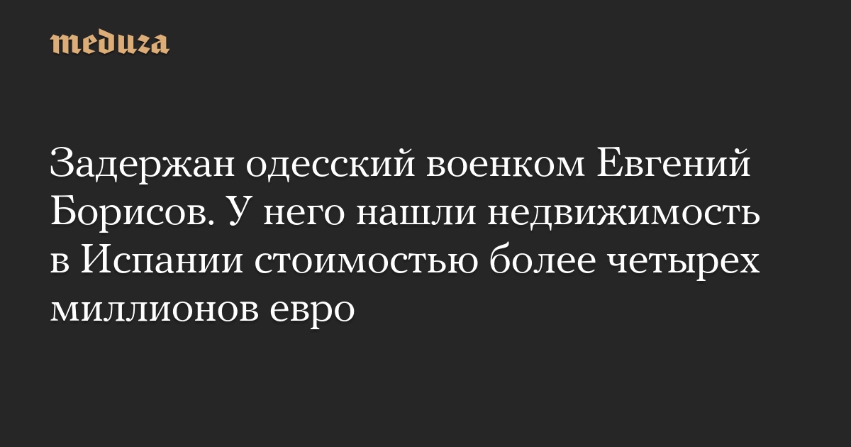 Во второй половине июня «Украинская правда» опубликовала расследование, из которого следовало, что после объявления в стране всеобщей мобилизации в феврале 2022 года члены семьи Евгения Борисова приобрели недвижимость и другое имущество в Испании на более чем четыре миллиона евро. Так, у матери военного в собственности появилась вилла, а у жены — офисное помещение. Кроме того, журналисты обнаружили, что у тещи Борисова в последние годы появился целый автопарк.