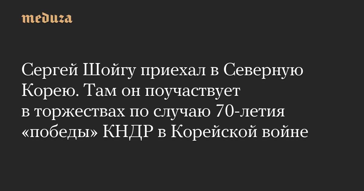 В Северной Корее делегация Минобороны во главе с Шойгу «примет участие в торжественных мероприятиях, посвященных 70-летию победы корейского народа в Отечественной освободительной войне 1950-1953 годов», говорится в пресс-релизе российского Минобороны.