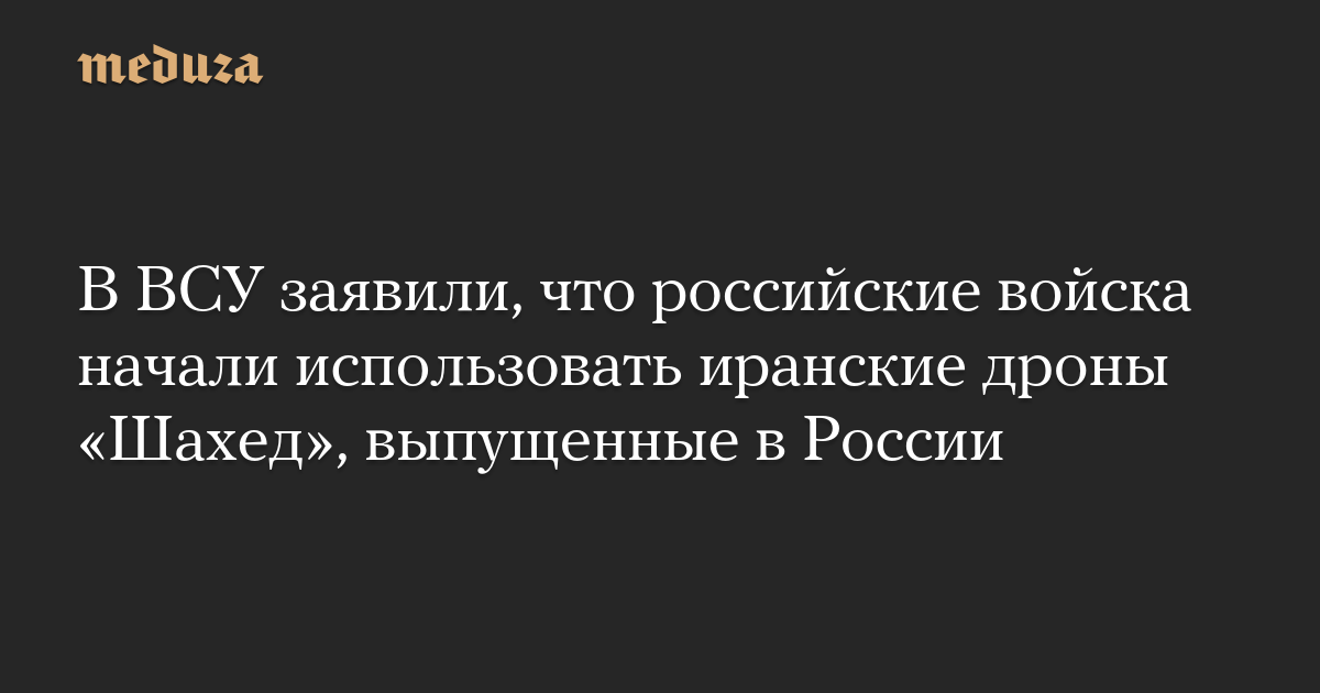 В ВСУ заявили, что российские войска начали использовать иранские дроны «Шахед», выпущенные в России