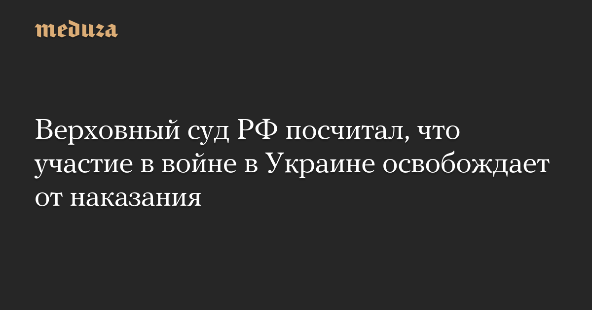 Верховный суд РФ посчитал, что участие в войне в Украине освобождает от наказания