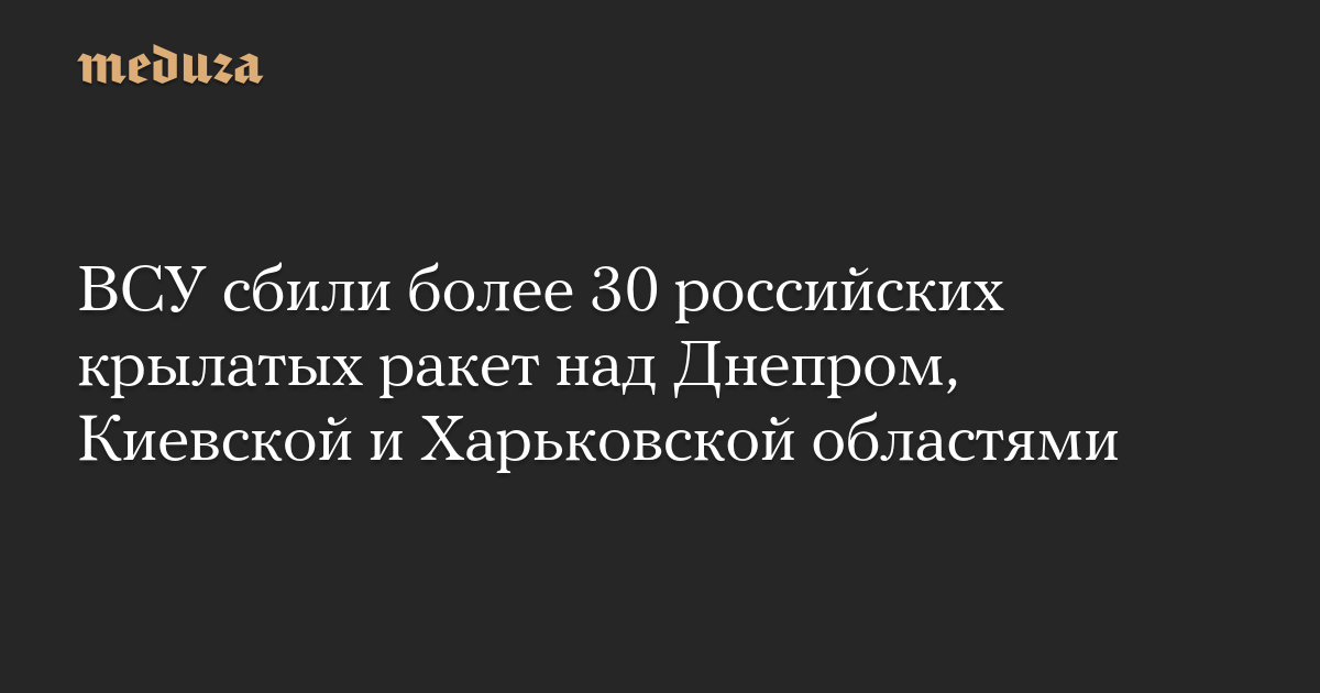 ВСУ сбили более 30 российских крылатых ракет над Днепром, Киевской и Харьковской областями