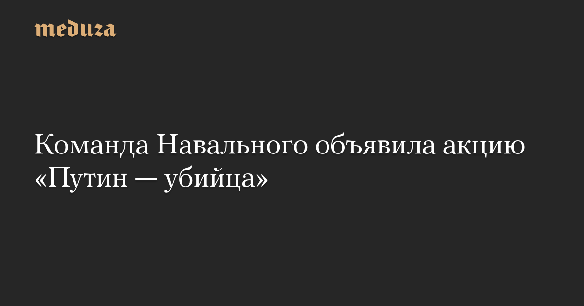 Соратники Алексея Навального объявили о проведении всемирной акции протеста под названием «Путин — убийца». Она пройдет 20 августа 2023 года, в третью годовщину отравления Навального.