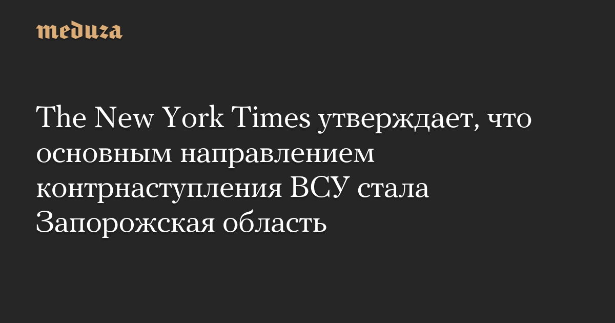 The New York Times утверждает, что основным направлением контрнаступления ВСУ стала Запорожская область