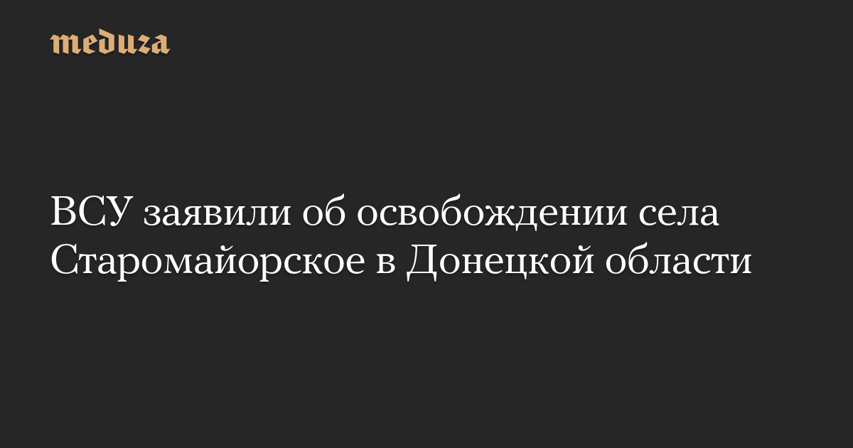 ВСУ заявили об освобождении села Старомайорское в Донецкой области
