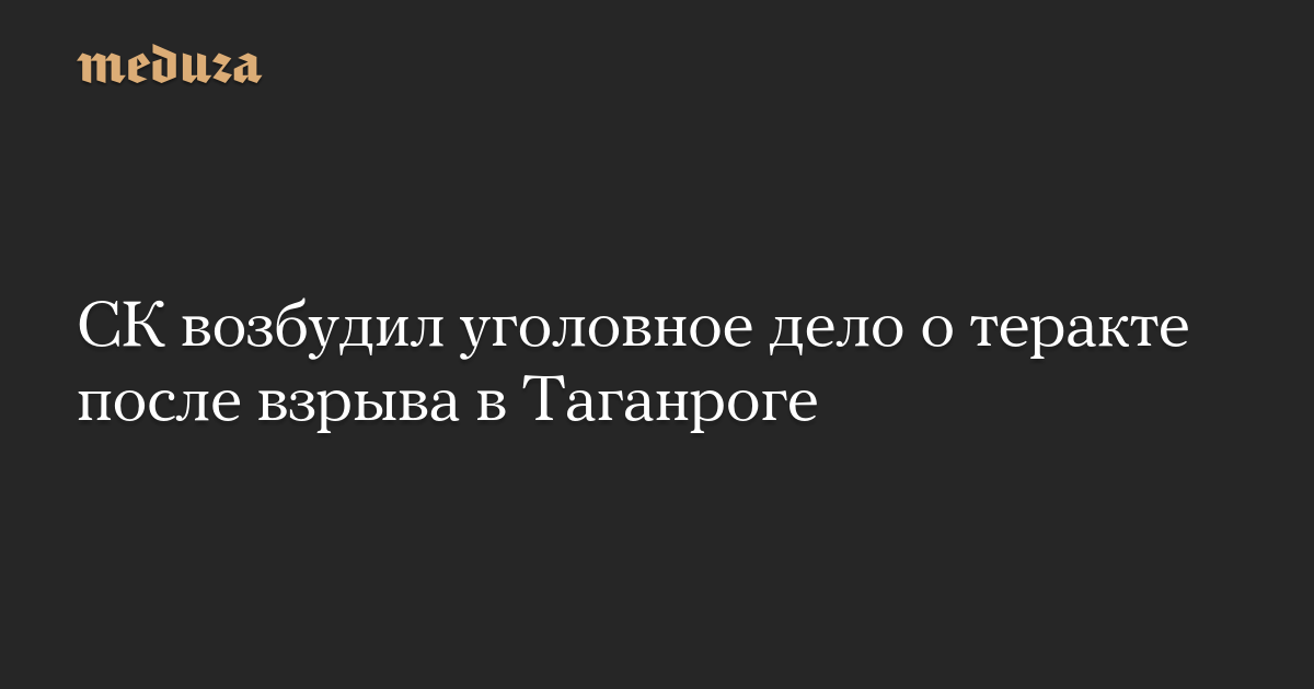 Следственный комитет России возбудил уголовное дело о теракте (статья 205 УК РФ) после взрыва в Таганроге. Об этом сообщает пресс-служба ведомства.
