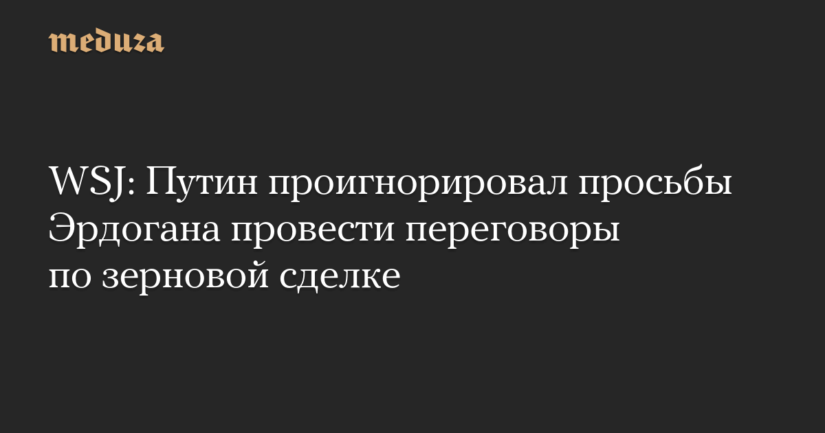 WSJ: Путин проигнорировал просьбы Эрдогана провести переговоры по зерновой сделке