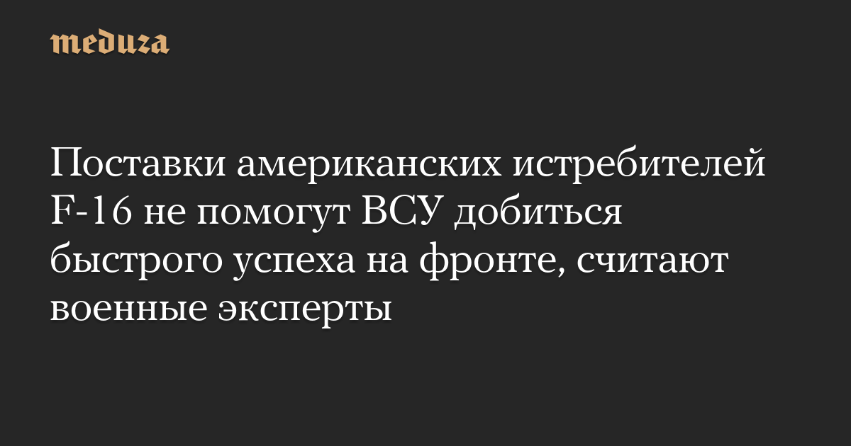Поставки американских истребителей F-16 не помогут ВСУ добиться быстрого успеха на фронте, считают военные эксперты