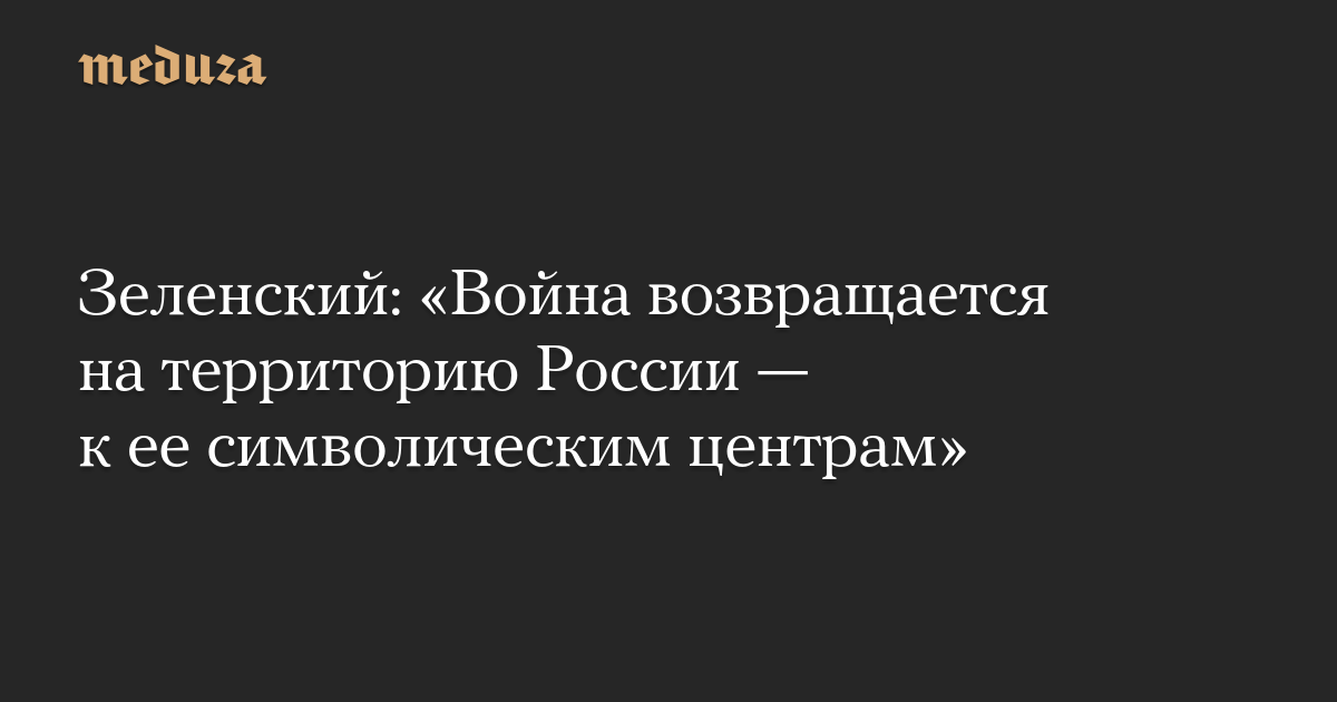 Зеленский: «Война возвращается на территорию России — к ее символическим центрам»