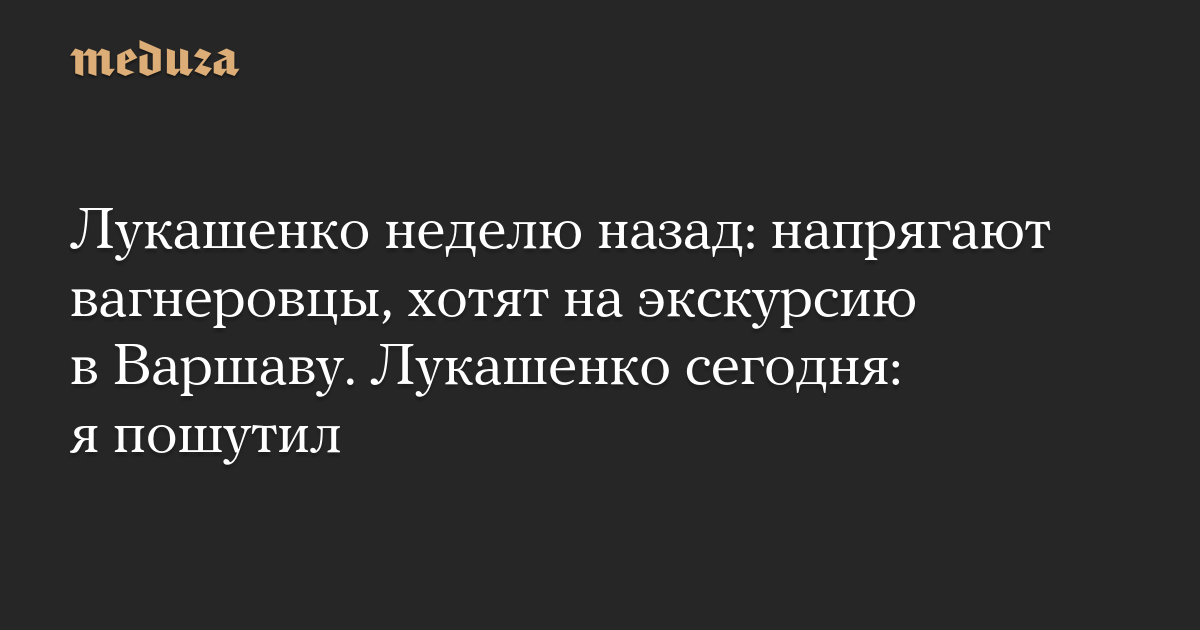 Лукашенко неделю назад: напрягают вагнеровцы, хотят на экскурсию в Варшаву. Лукашенко сегодня: я пошутил