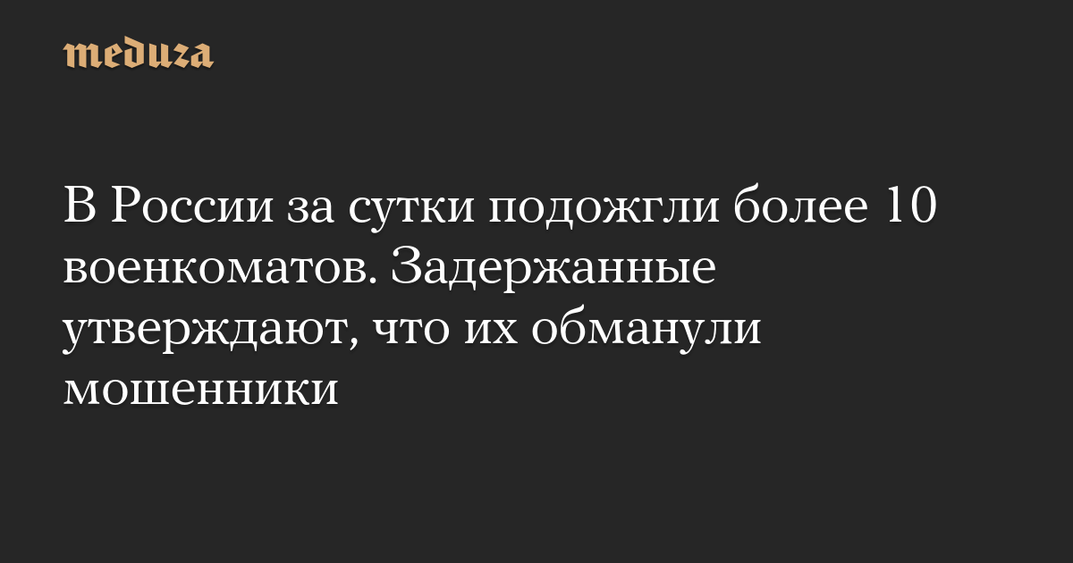 В России за сутки подожгли более 10 военкоматов. Задержанные утверждают, что их обманули мошенники