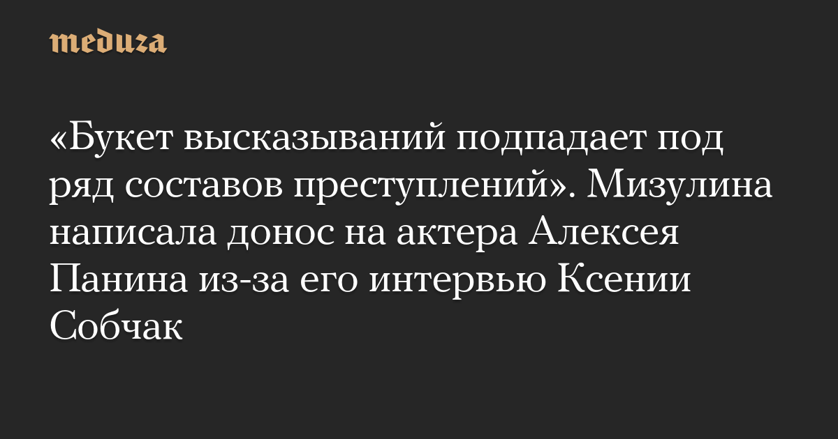 «Букет высказываний подпадает под ряд составов преступлений». Мизулина написала донос на актера Алексея Панина из-за его интервью Ксении Собчак