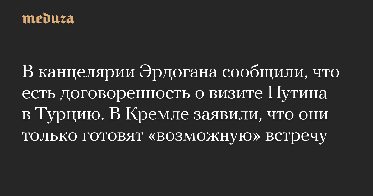 В канцелярии Эрдогана сообщили, что есть договоренность о визите Путина в Турцию. В Кремле заявили, что они только готовят «возможную» встречу