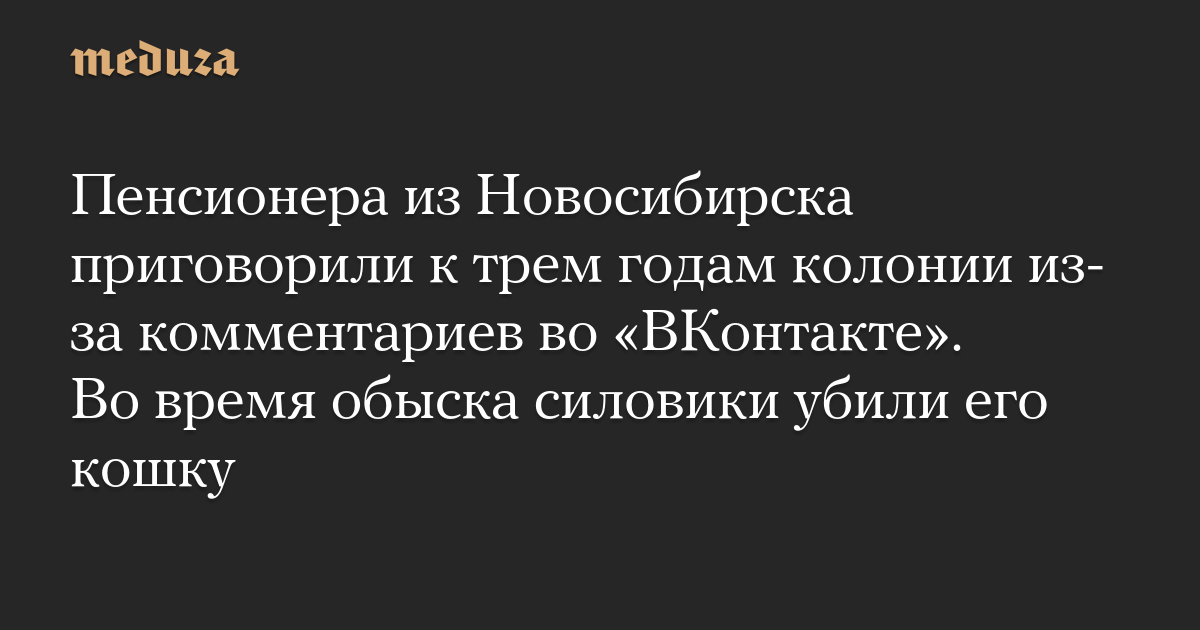 Пенсионера из Новосибирска приговорили к трем годам колонии из-за комментариев во «ВКонтакте». Во время обыска силовики убили его кошку