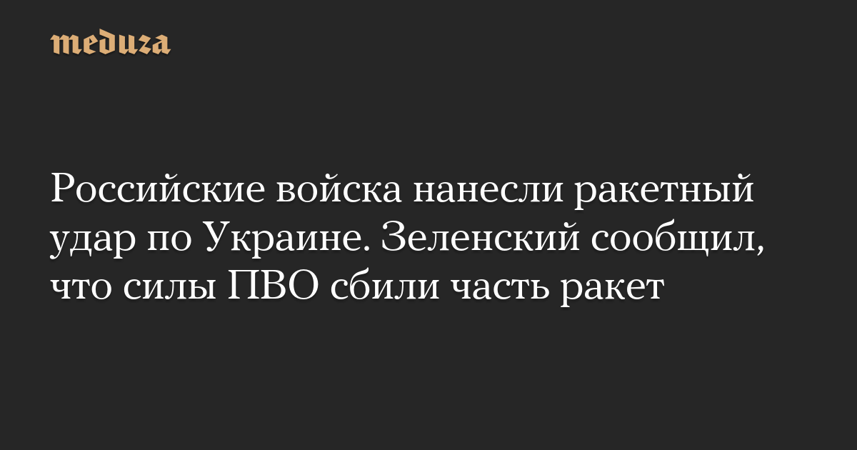 Российские войска нанесли ракетный удар по Украине. Зеленский сообщил, что силы ПВО сбили часть ракет