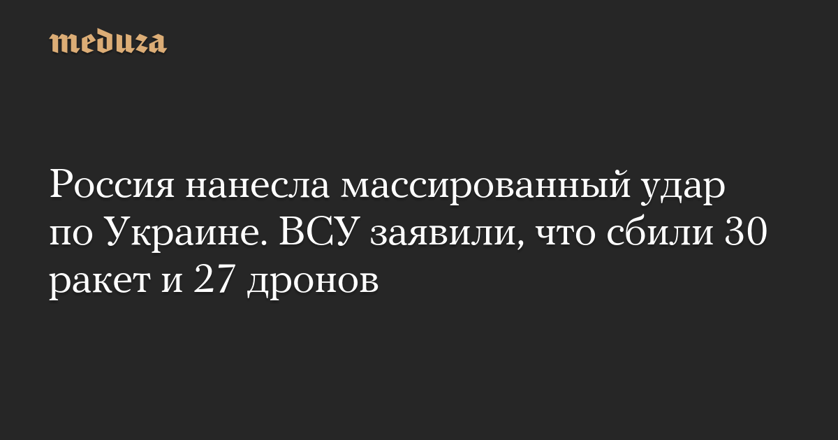 Россия нанесла массированный удар по Украине. ВСУ заявили, что сбили 30 ракет и 27 дронов