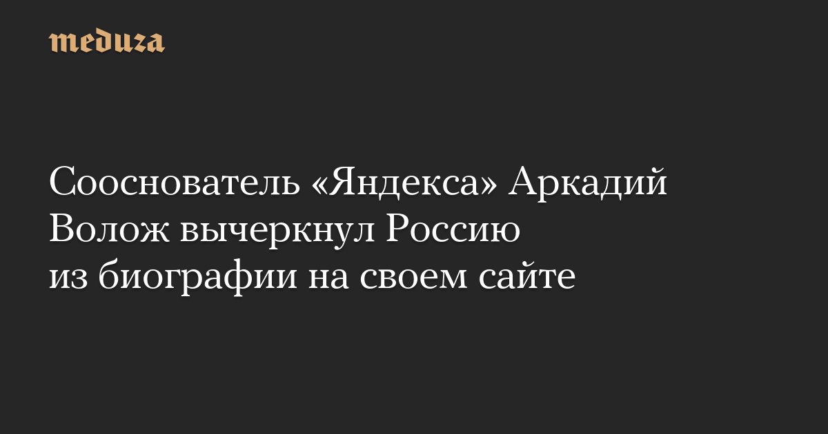 Сооснователь и бывший генеральный директор «Яндекса» Аркадий Волож назвал себя израильским предпринимателем в биографии на своем сайте. На это обратило внимание «Агентство».