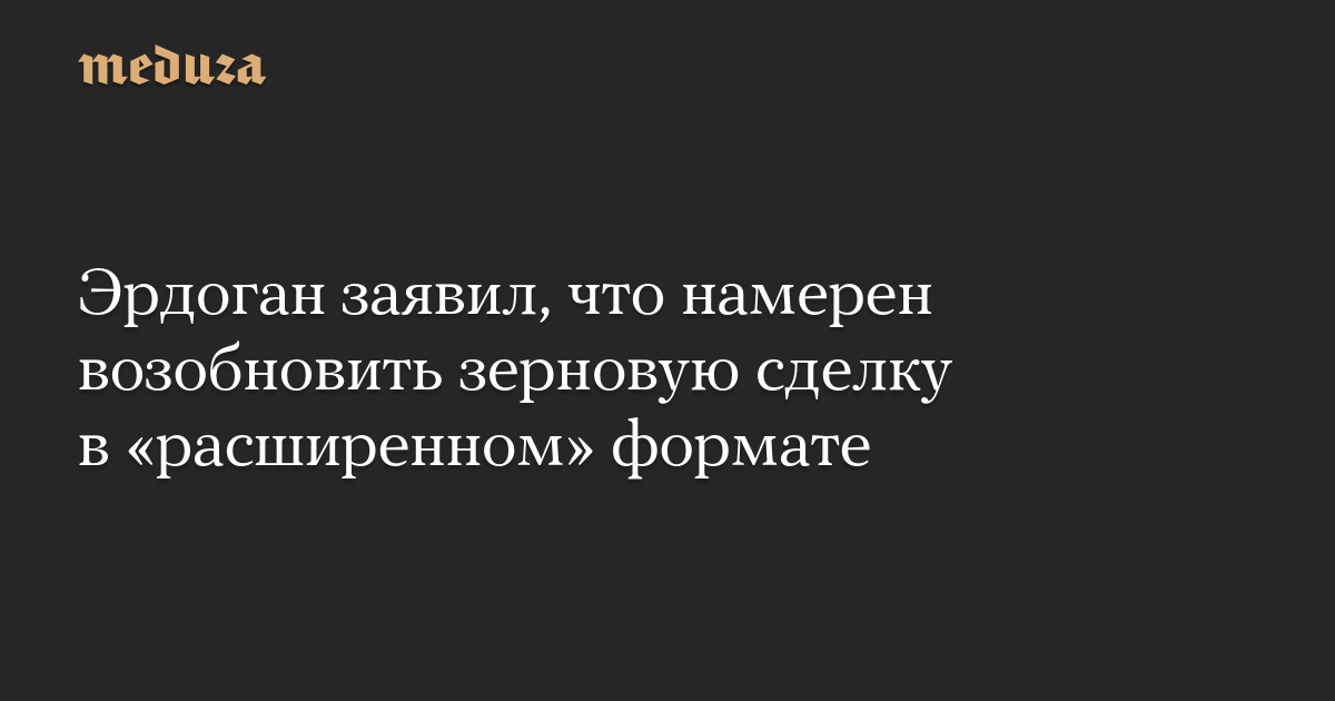 Эрдоган также отметил, что контакты для возобновления сделки в «расширенном» формате продолжаются, но ее реализация зависит от того, «выполнят ли западные страны свои обещания». Президент Турции не уточнил, что это за формат и условия.