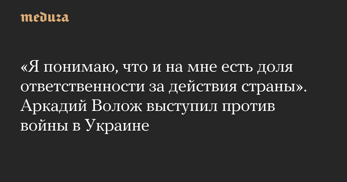 «Я понимаю, что и на мне есть доля ответственности за действия страны». Аркадий Волож выступил против войны в Украине