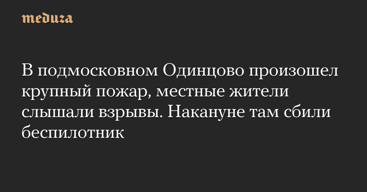 В подмосковном Одинцово произошел крупный пожар, местные жители слышали взрывы. Накануне там сбили беспилотник
