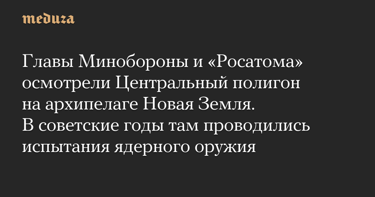 Главы Минобороны и «Росатома» осмотрели Центральный полигон на архипелаге Новая Земля. В советские годы там проводились испытания ядерного оружия