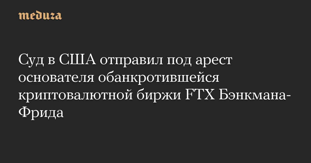 Суд в США отправил под арест основателя обанкротившейся криптовалютной биржи FTX Бэнкмана-Фрида