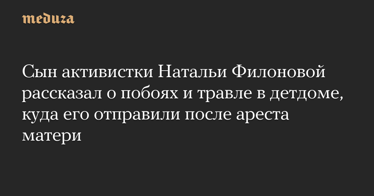 Сын активистки Натальи Филоновой рассказал о побоях и травле в детдоме, куда его отправили после ареста матери
