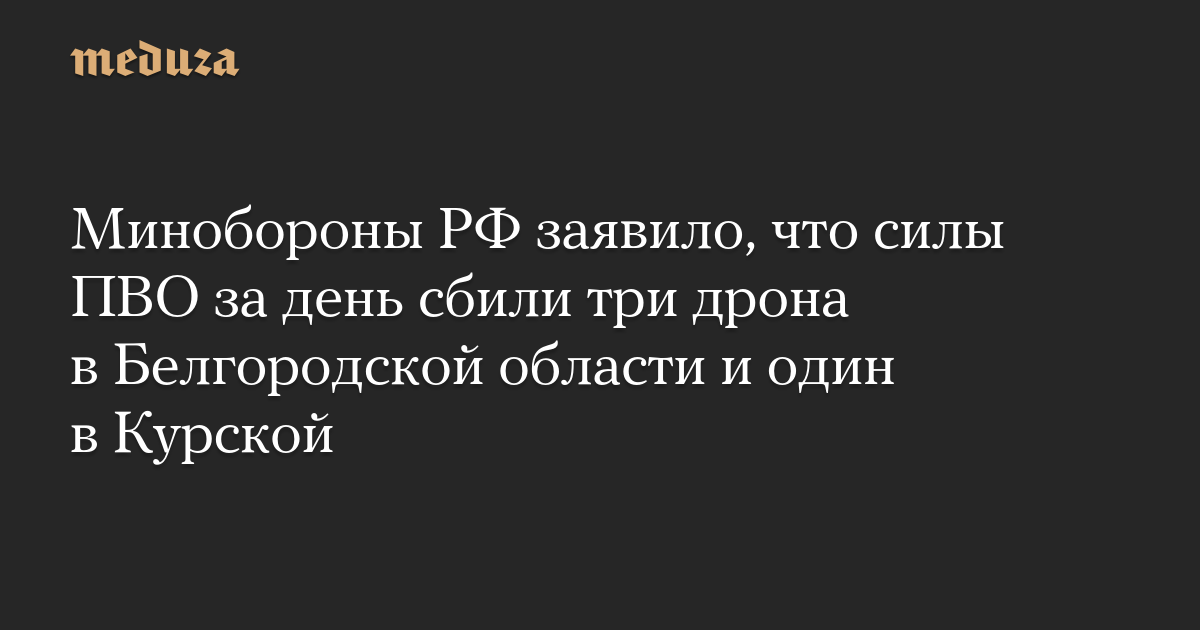 Минобороны РФ заявило, что силы ПВО за день сбили три дрона в Белгородской области и один в Курской