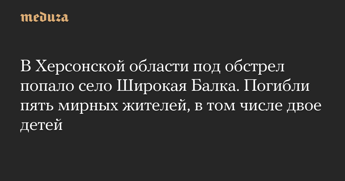 В Херсонской области под обстрел попало село Широкая Балка. Погибли пять мирных жителей, в том числе двое детей