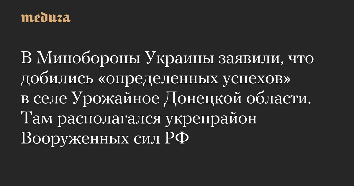 В Минобороны Украины заявили, что добились «определенных успехов» в селе Урожайное Донецкой области. Там располагался укрепрайон Вооруженных сил РФ