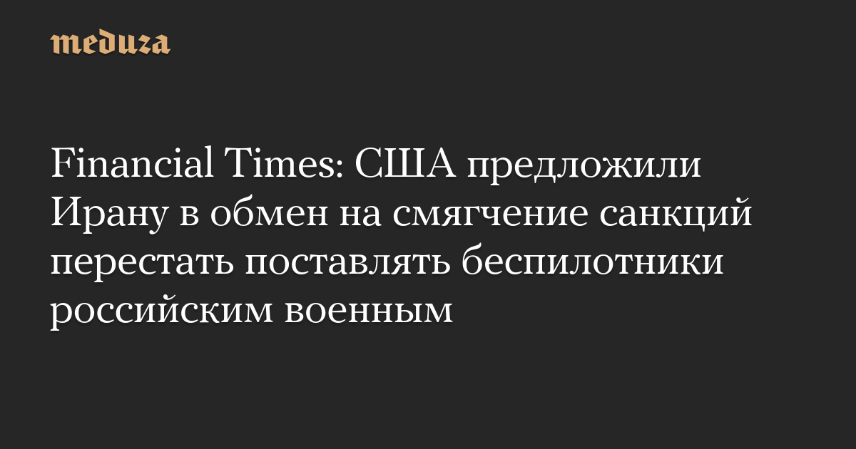 США предложили Ирану отказаться от поставок в Россию беспилотников и запчастей к ним в обмен на смягчение санкций, сообщает Financial Times со ссылкой на свои источники.