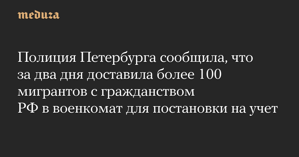 Полиция Петербурга сообщила, что за два дня доставила более 100 мигрантов с гражданством РФ в военкомат для постановки на учет