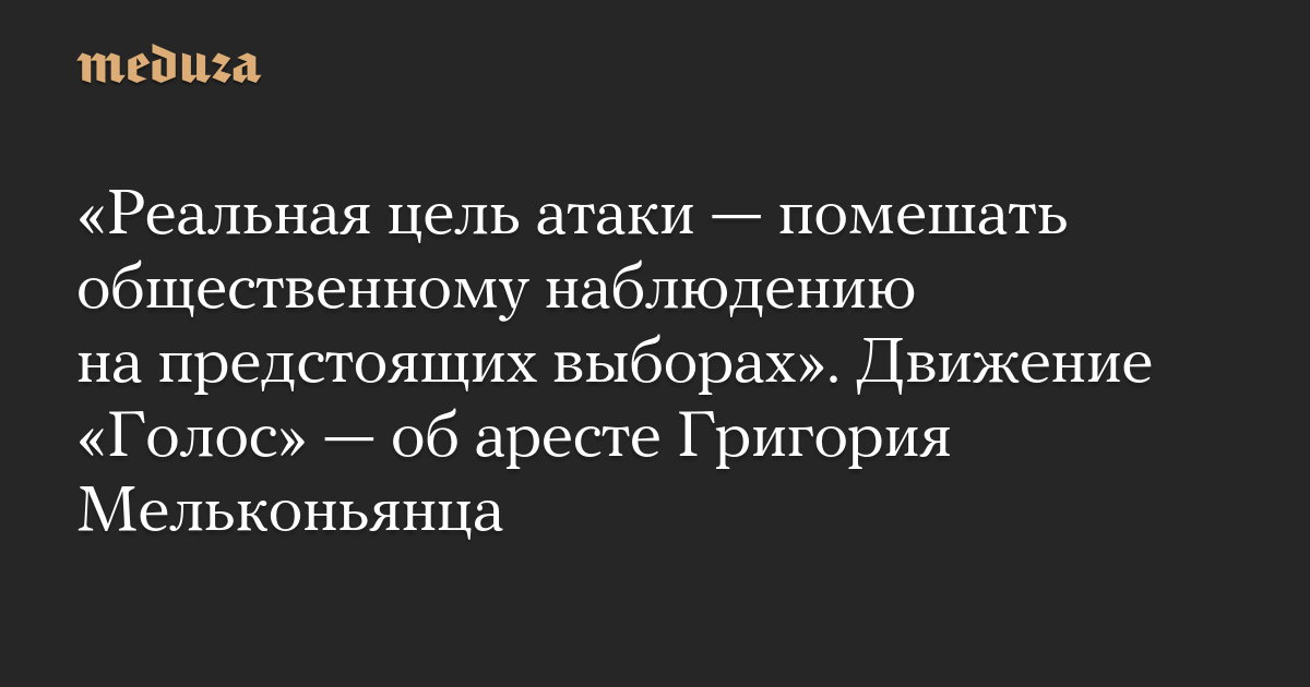 «Реальная цель атаки — помешать общественному наблюдению на предстоящих выборах». Движение «Голос» — об аресте Григория Мельконьянца