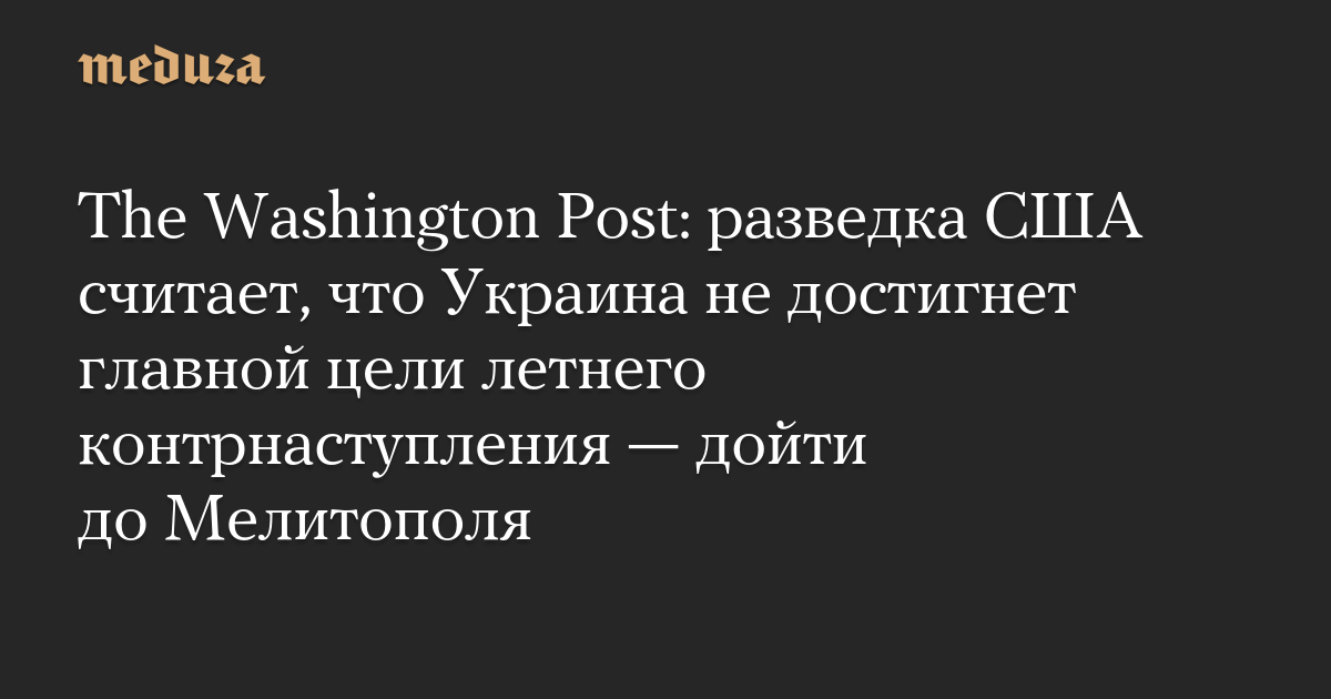 The Washington Post: разведка США считает, что Украина не достигнет главной цели летнего контрнаступления — дойти до Мелитополя