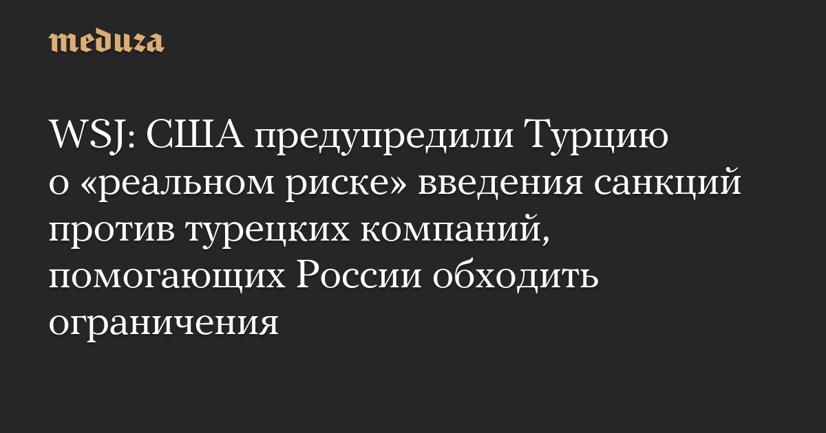 Власти США предупредили правительство Турции о «реальном риске» введения ограничений против турецких компаний, помогающих России обходить санкции, сообщает The Wall Street Journal (WSJ) со ссылкой на западных чиновников.