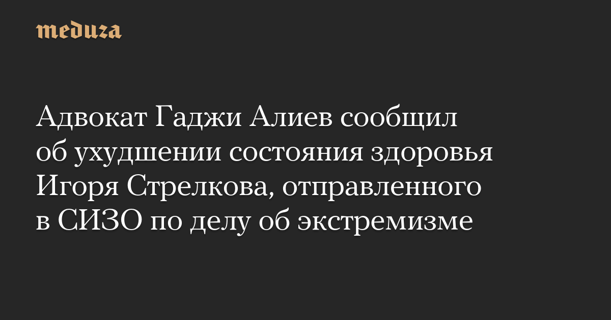 Адвокат Гаджи Алиев сообщил об ухудшении состояния здоровья Игоря Стрелкова, отправленного в СИЗО по делу об экстремизме