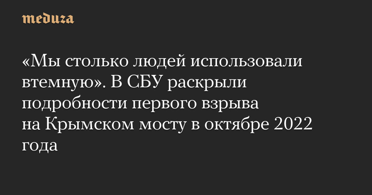 «Мы столько людей использовали втемную». В СБУ раскрыли подробности первого взрыва на Крымском мосту в октябре 2022 года