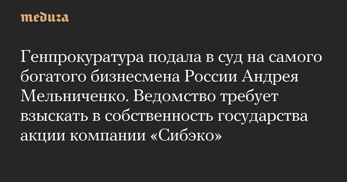 По информации телеграм-канала «Совет без рынка», иск касается взыскания с Мельниченко в пользу государства акций компании «Сибэко», приобретенной в 2018 году за 32,51 миллиарда рублей через подконтрольные миллиардеру «Кузбассэнерго» и ХСРК.