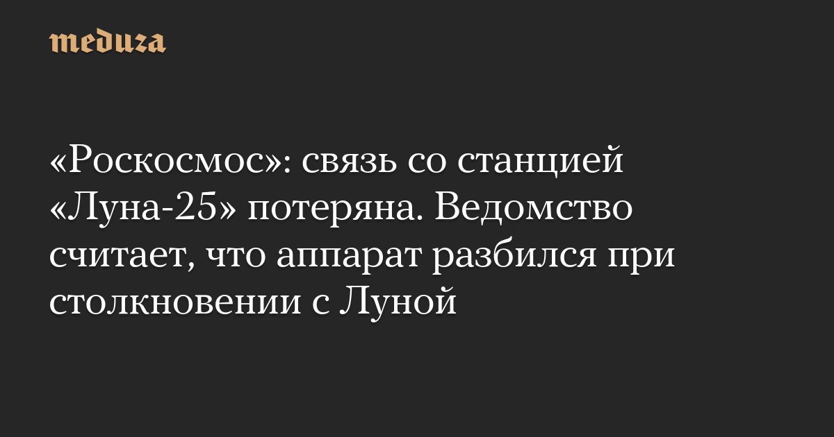 «Роскосмос»: связь со станцией «Луна-25» потеряна. Ведомство считает, что аппарат разбился при столкновении с Луной