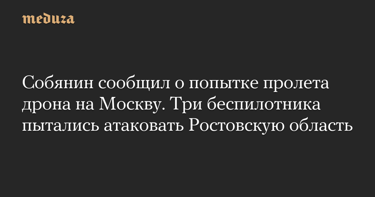 Собянин сообщил о попытке пролета дрона на Москву. Три беспилотника пытались атаковать Ростовскую область