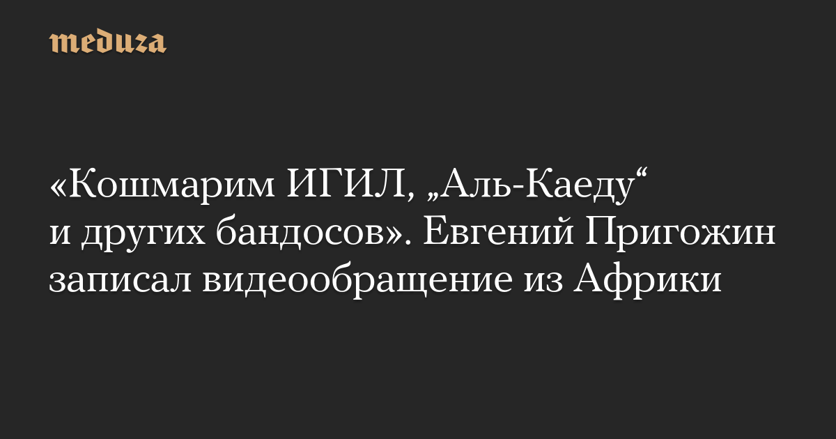 По словам Пригожина, сейчас ЧВК Вагнера «делает Россию еще более великой на всех континентах, а Африку еще более свободной» и «кошмарит ИГИЛ, „Аль-Каеду“ и других бандосов».