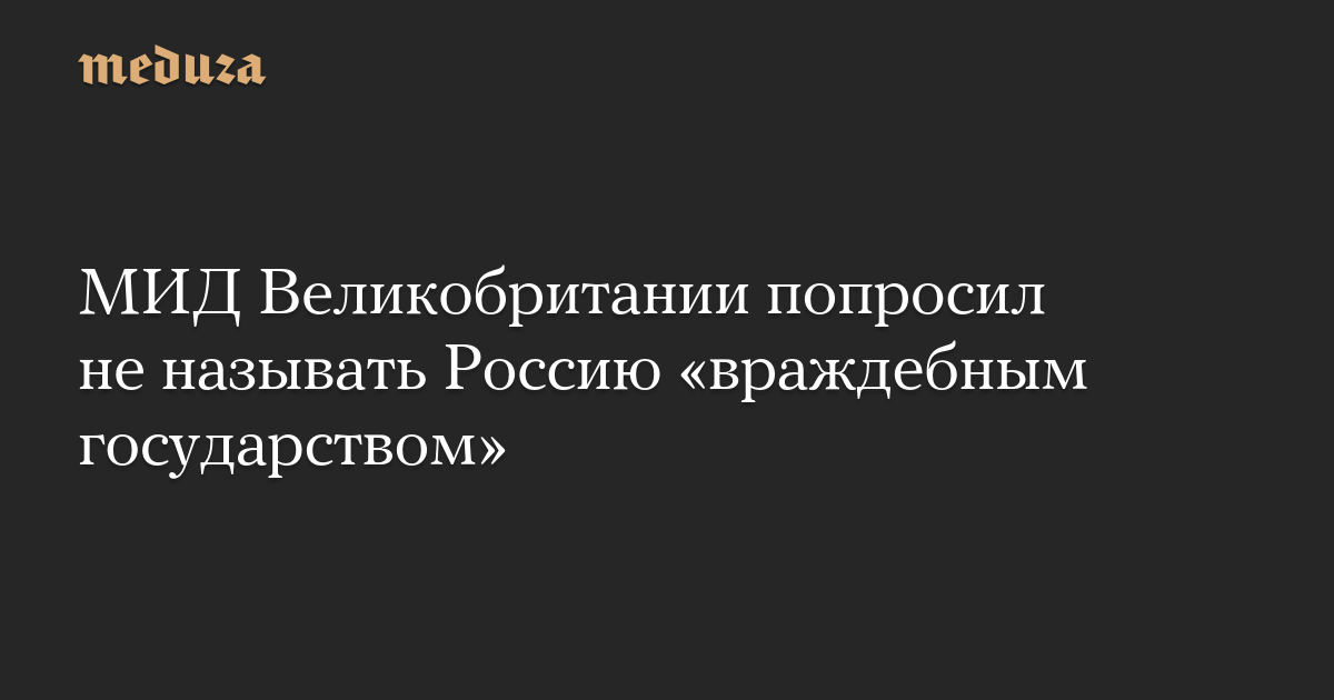 МИД Великобритании попросил не называть Россию «враждебным государством»