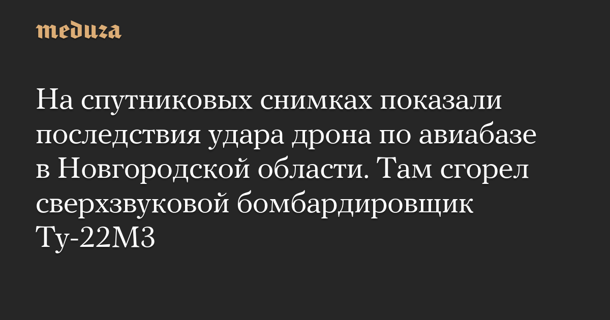 Минобороны РФ сообщило, что беспилотник атаковал аэродром в Новгородской области 19 августа, из-за чего на стоянке самолетов произошел пожар. По данным Минобороны, повреждения получил один самолет, пострадавших нет. После удара дрона появились фотографии, на которых, как утверждалось, показан горящий бомбардировщик Ту-22М3.