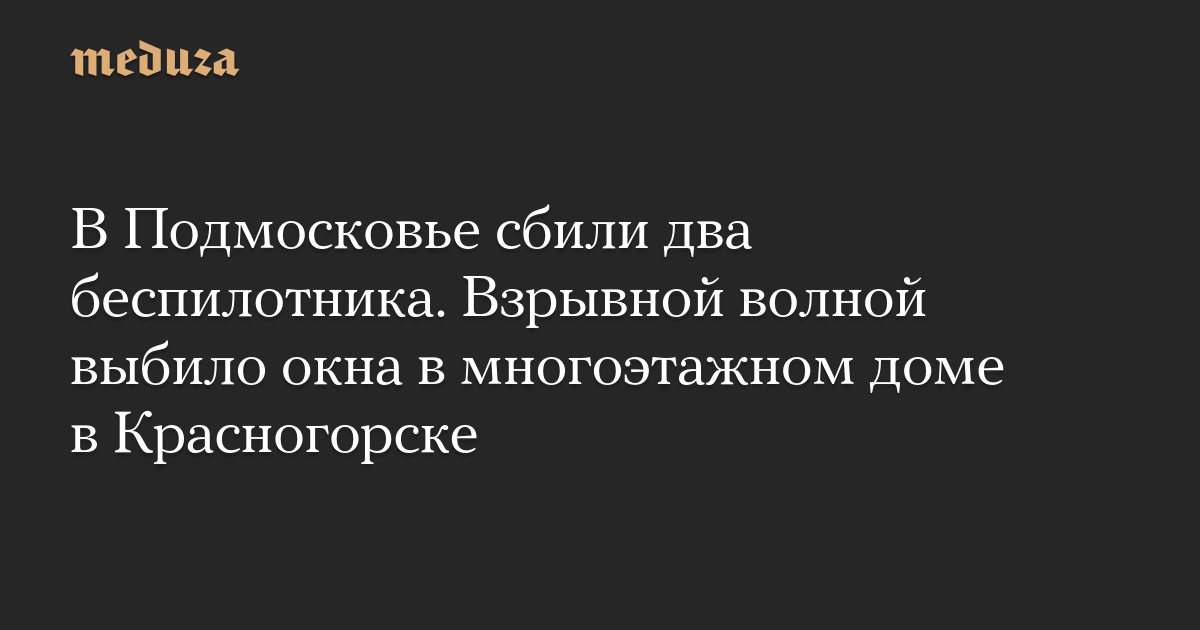 В Подмосковье сбили два беспилотника. Взрывной волной выбило окна в многоэтажном доме в Красногорске