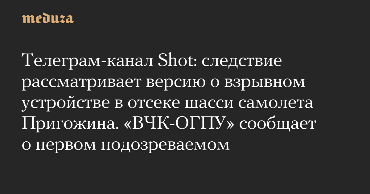 Телеграм-канал Shot: следствие рассматривает версию о взрывном устройстве в отсеке шасси самолета Пригожина. «ВЧК-ОГПУ» сообщает о первом подозреваемом