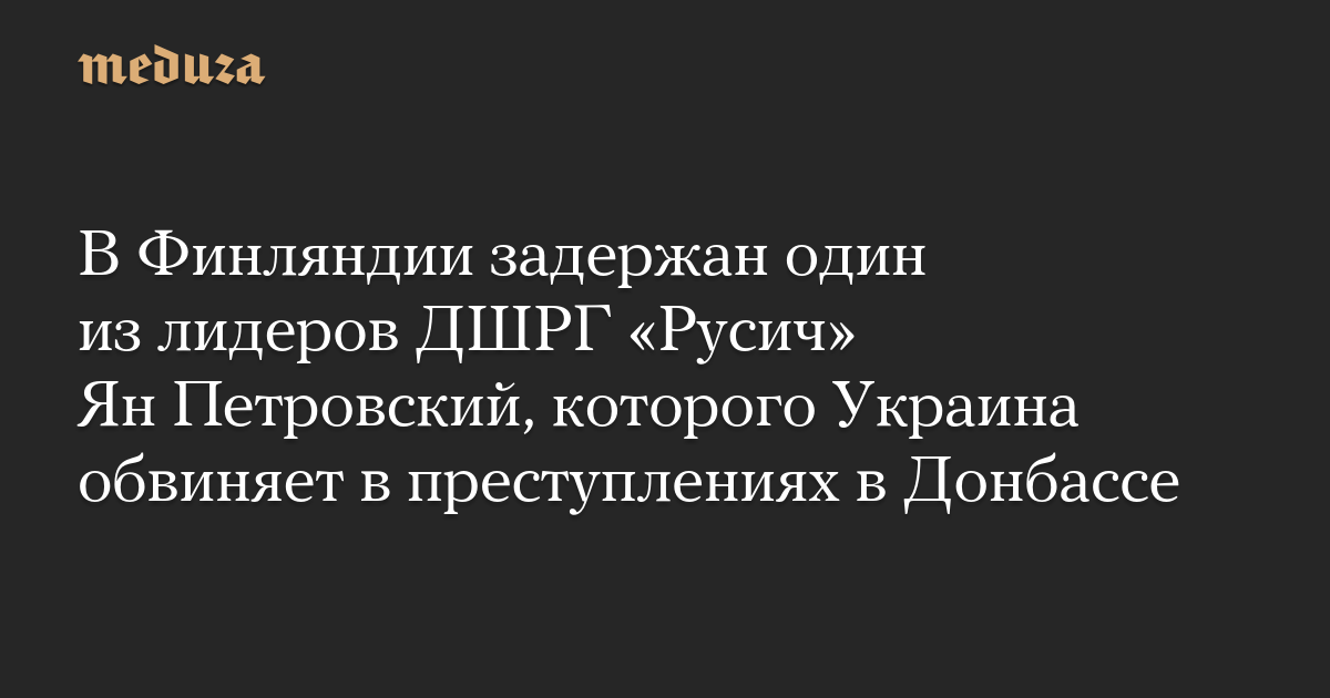 Финская полиция задержала Яна Петровского из диверсионно-штурмовой разведывательной группы «Русич», сообщает телеканал MTV3.