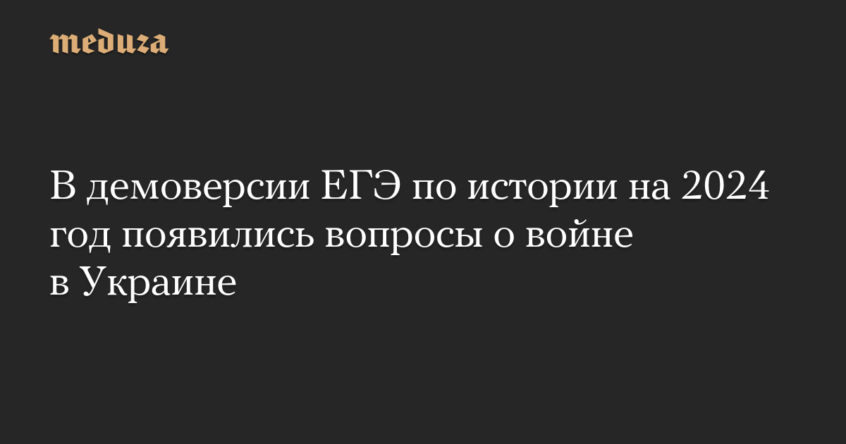 Федеральный институт педагогических измерений (ФИПИ) опубликовал на своем сайте демонстрационную версию Единого государственного экзамена по истории, который пройдет в 2024 году. В нем есть два вопроса, связанные со «специальной военной операцией», как российские власти называют вторжение в Украину. Первыми внимание на это обратили «Верстка» и «Медиазона».